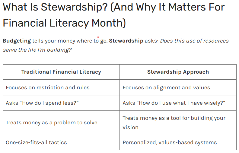 Reflections: Stewardship Principles for Financial Literacy Month. By Tiffany Grant, MBA, AFC, SHRM-CP